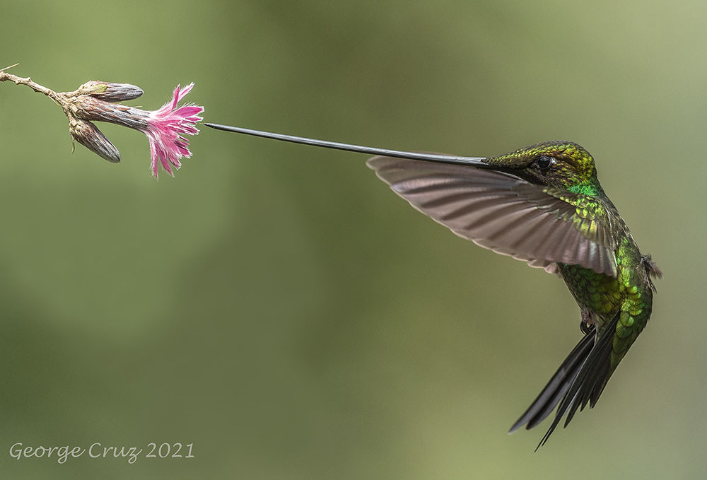 Day Two – Birding San Jorge Reserve/Quito Birding Center - Upper Farm Road & Yanacocha old road, Alambi Road & Nono Tandayapa Road (ANDES HIGHLANDS/UPPER CLOUD FOREST) feeders, gardens, road walking. Feeders at the lodge are visited by the Black-tailed Trainbearer, Green-tailed Trainbearer, Sword-billed Hummingbird, Sparkling Violetear, Tyrian Metaltail, Shining Sunbeam, and, the tiny White-bellied Woodstar. The Trail around the lodge offers possible Tufted Tit-tyrant, Rufous-naped Brush-Finch, Azara's Spinetail, Crimson-mantled Woodpecker, Scarlet-bellied Mountain-Tanager, Blue-and-yellow Tanager, Southern Yellow Grosbeak, Red-crested Cotinga, and the Streak-throated Bush-Tyrant. Overnight San Jorge Tandayapa Lodge, includes 3 meals (boxed lunch)